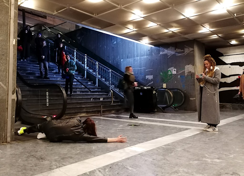 The visibly operating part of the city became the focus of video recordings and inspiration for artist’s movement improvisations. Observing outdoor construction sites led to a composition of choreography based on Japanese contemporary dance butoh, intertwined with architectural elements.